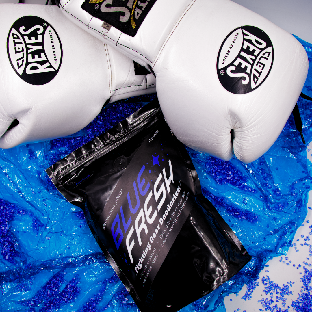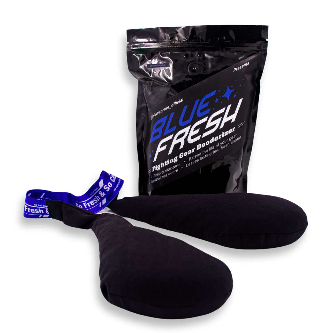 BlueFresh es nuestro desodorizante para guantes de boxeo, te ayudará a mantenerlos libres de humedad, siempre frescos, secos y oliendo rico. Además, elimina hongos y bacterias.