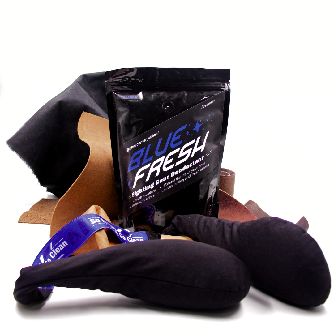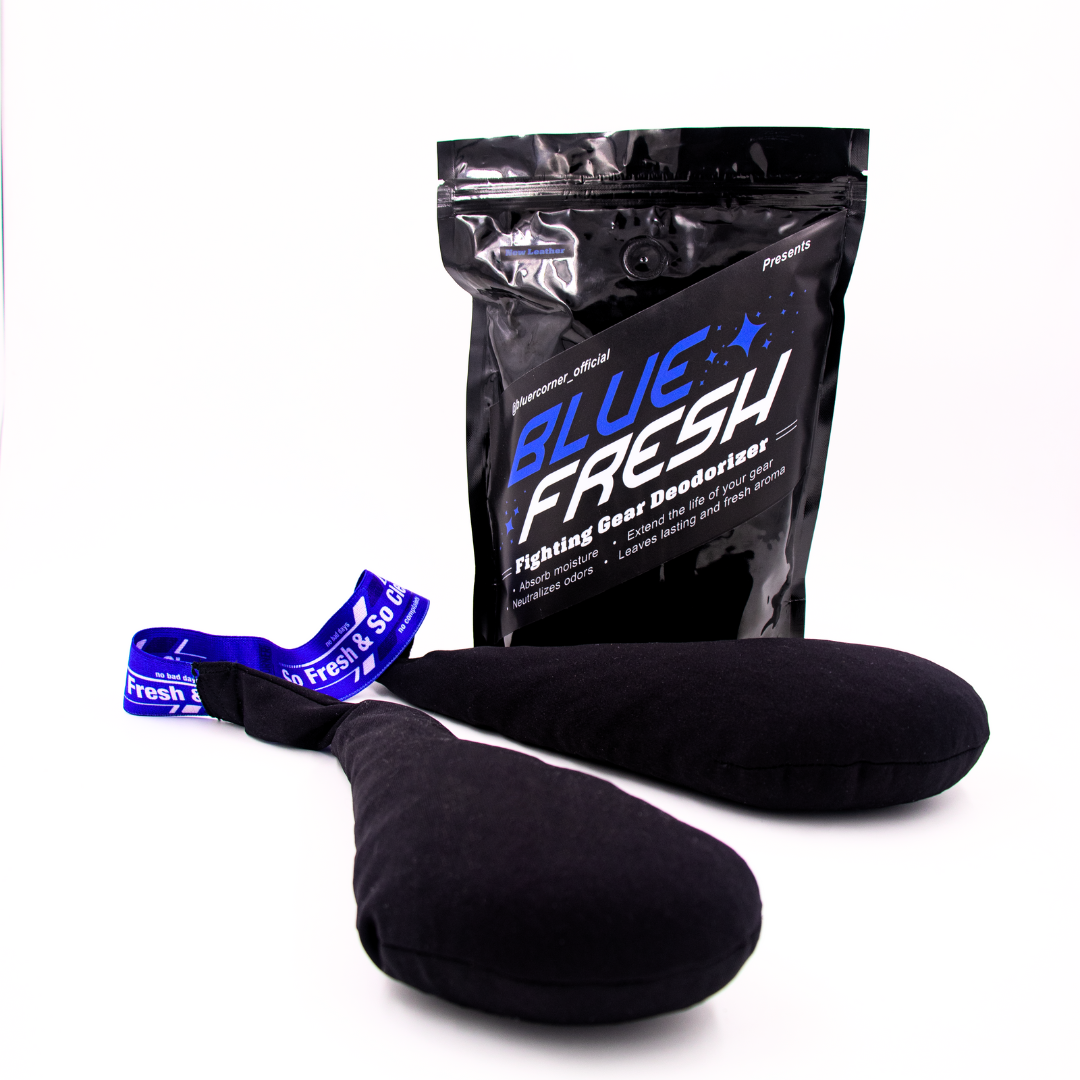 BlueFresh es nuestro desodorizante para guantes de boxeo, te ayudará a mantenerlos libres de humedad, siempre frescos, secos y oliendo rico. Además, elimina hongos y bacterias.